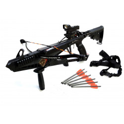 В комплект входит: Приклад телескопический, Коллиматорный прицел, Рукоятка тактическая, Стрела арбалетная карбон 7.5 дюймов - 6 шт, воск, защитные очки, ремень для переноски