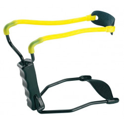 Рогатка с упором для руки, с магазиом для шариков и с прицелом. Также есть возможность регулировки упора и рогов с резинкой.