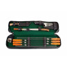 В комплект входит: открытый коллиматорный прицел, воск, рукоять, пять пластиковых стрел и обойма для них, которая крепится на руку.