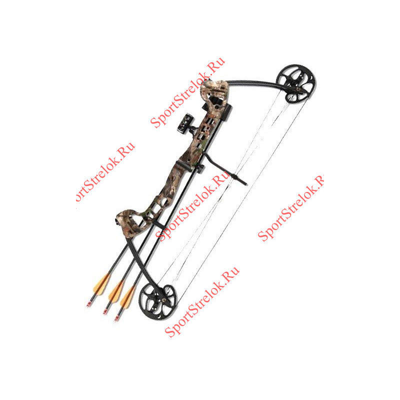 В комплекте с луком поставляются 3 стрелы, Кивер для стрел, Полочка, прицел с тремя пинами.