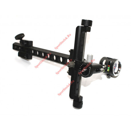 • Пузырьковый уровень, микро регулирование по горизонтали и вертикали, съемное крепление к луку, скоп с линзой X4