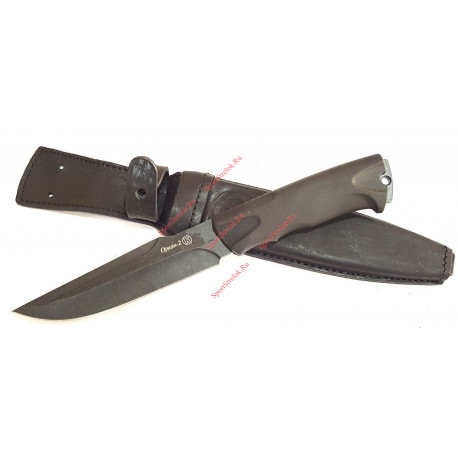 Нож «Орлан 2», выпускаемый предприятием «Кизляр» может пригодиться как охотникам и туристам, так и военнослужащим для выполнения хозяйственно-бытовых работ в полевых условиях. Нож не относится к гражданскому холодному оружию и прошел сертификацию как разделочный. Возможно также применение этого ножа для защиты от агрессивных диких животных или человека. Длина ножа «Орлан» составляет 275 мм, а размеры однолезвийного клинка – 145х35х4,2 мм. Клинок имеет форму, близкую к копьеобразной, основное лезвие образуется длинными вогнутыми спусками, а голомени клинка имеют усиливающие ребра жесткости. В корневой части клинка со стороны обуха сделан упор для большого пальца, позволяющий более удобно использовать нож при резке. Кроме этого, функции крестовины, предохраняющей руку при колющих ударах выполняет специальный выступ на рукояти со стороны лезвия. Клинок «Орлана» изготавливается из стали AUS8. Твердость достигает 57-59 HRC, а на клинок наносится темное антибликовое покрытие. Рукоять изготавливается из резинопластика Elastron G, который напрессовывается на проходящий по всей длине рукоятки хвостовик клинка. Комплектуется нож «Орлан» поясными кожаными ножнами.
