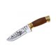 Гарда и навершие ножа выполнены из латуни с тиснением рисунка на металле, благодаря этим элементам нож имеет более привлекательный внешний вид и прекрасно подойдет в качестве подарка.