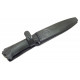 Нож Милитари станет отличным помощником всем тем, чья работа связана с возможностью оказаться в экстремальной ситуации. Клинок имеет форму с небольшим понижением обуха по направлению к кончику. От середины обуха начинается фальшлезвие. Клинок имеет общее сужение по направлению к кончику и высокие спуски от середины. Клинок сплошной, проходит через всю рукоять. В заднике ножа, клинок выступает, образуя ударное навершие с темлячным отверстием. Благодаря особой форме клинка, нож отлично приспособлен для совершения колющих и режущих движений. Упор второй руки на окончание рукояти, обеспечивает максимальное усилие на кончике ножа. Клинок имеет черное матовое покрытие, благодаря чему не бликует на солнце. Рукоятка ножа выполнена из эластрона и имеет эргономичную форму. Рукоять имеет небольшие ограничители для безопасного удержания ножа и защиты руки от соскальзывания в процессе работы. Нож укомплектован пластиковыми ножнами, обтянутыми качественной кожей.